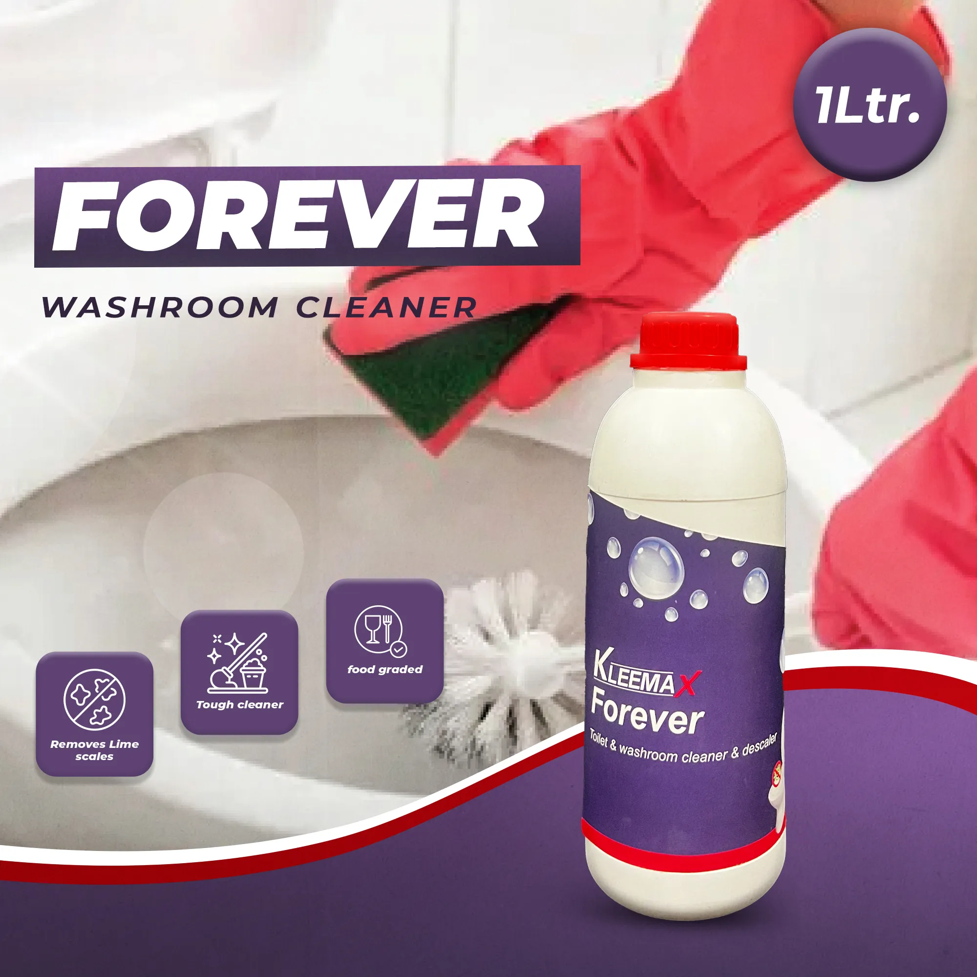 Kleemax Forever Thick Gel is a strong toilet cleaning gel that will remove stubborn stains, limescale deposits, and germs from your commodes. Kleemax Forever Thick Gel is a toilet cleaner because of its unique thick gel; it stays on the bowl, penetrates and removes even the toughest stains and odors, leaving your commode spotless and sanitary after each use. This thick gel is easy to apply and rinses off easily, leaving behind a long-lasting shine and protection, and upkeeping the toilet clean and germ-free every day! Suitable for Western and traditional toilets.