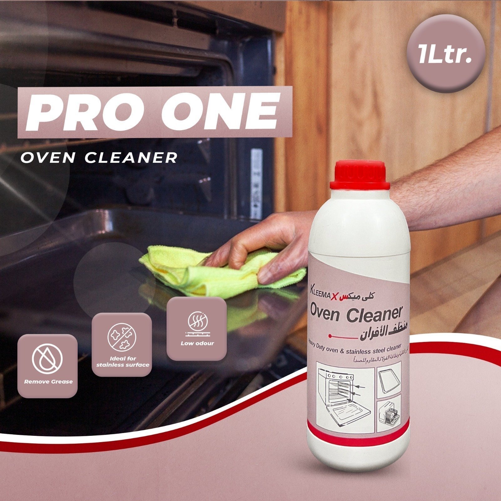 Kleemax Pro One is a fast-acting, efficient spot remover specially formulated to eliminate stubborn baked-on and burnt grease. Ideal for deep cleaning ovens, grills, and stainless steel surfaces, it delivers powerful results while being more economical than many alternatives. Pro One restores cleanliness with ease and ensures user satisfaction. Let sit for 10–20 minutes, scrub, rinse thoroughly, and allow to air dry. For stainless steel, dilute 50 ml in 450 ml of water, spray, wait 10 minutes, scrub, and rinse for a clean finish.